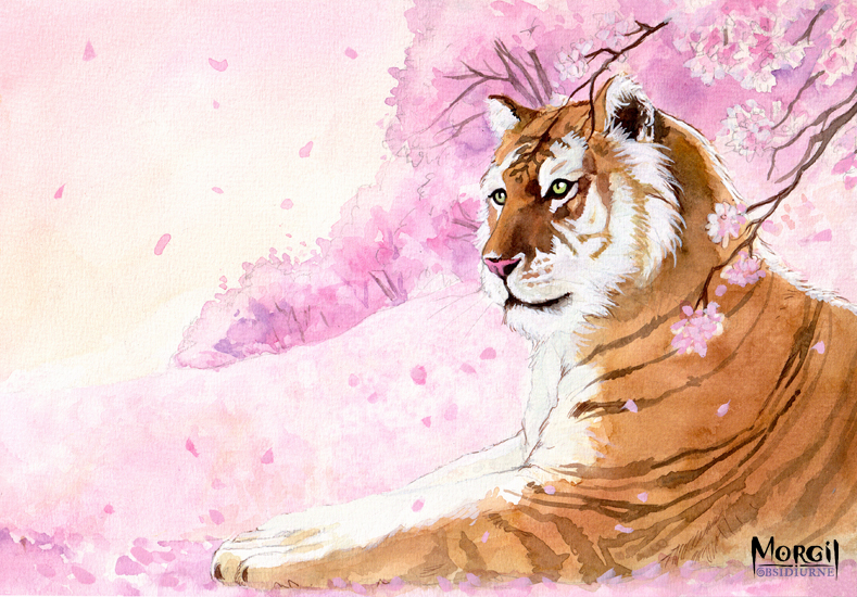 En tout cas j’ai hĂąte de vous le faire dĂ©couvrir.En attendant de pouvoir vous en montrer davantage, jâavais envie de partager avec vous une nouvelle illustration : mon tigre dorĂ© sous les cerisier en fleurs đžâš (j’adore peindre les fĂ©lins et plus particuliĂšrement les tigres !).
